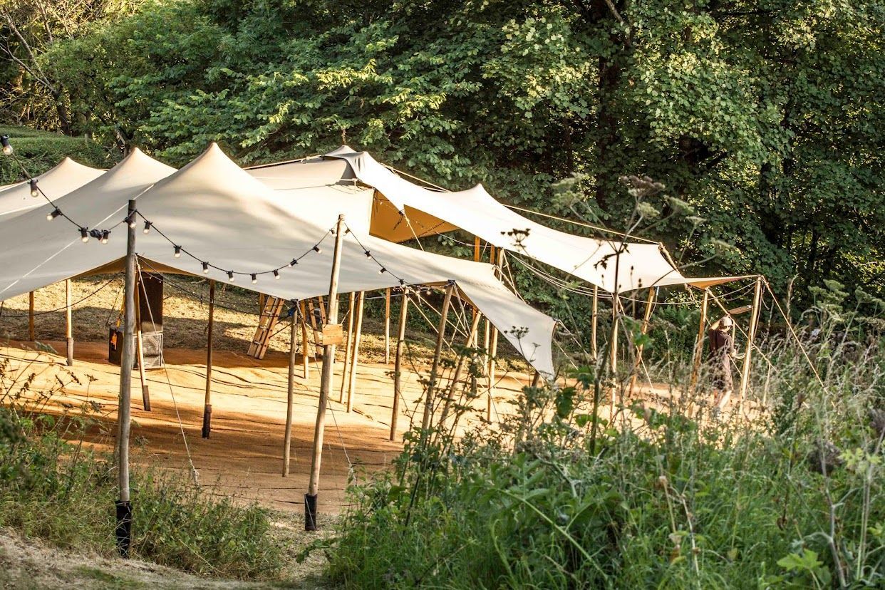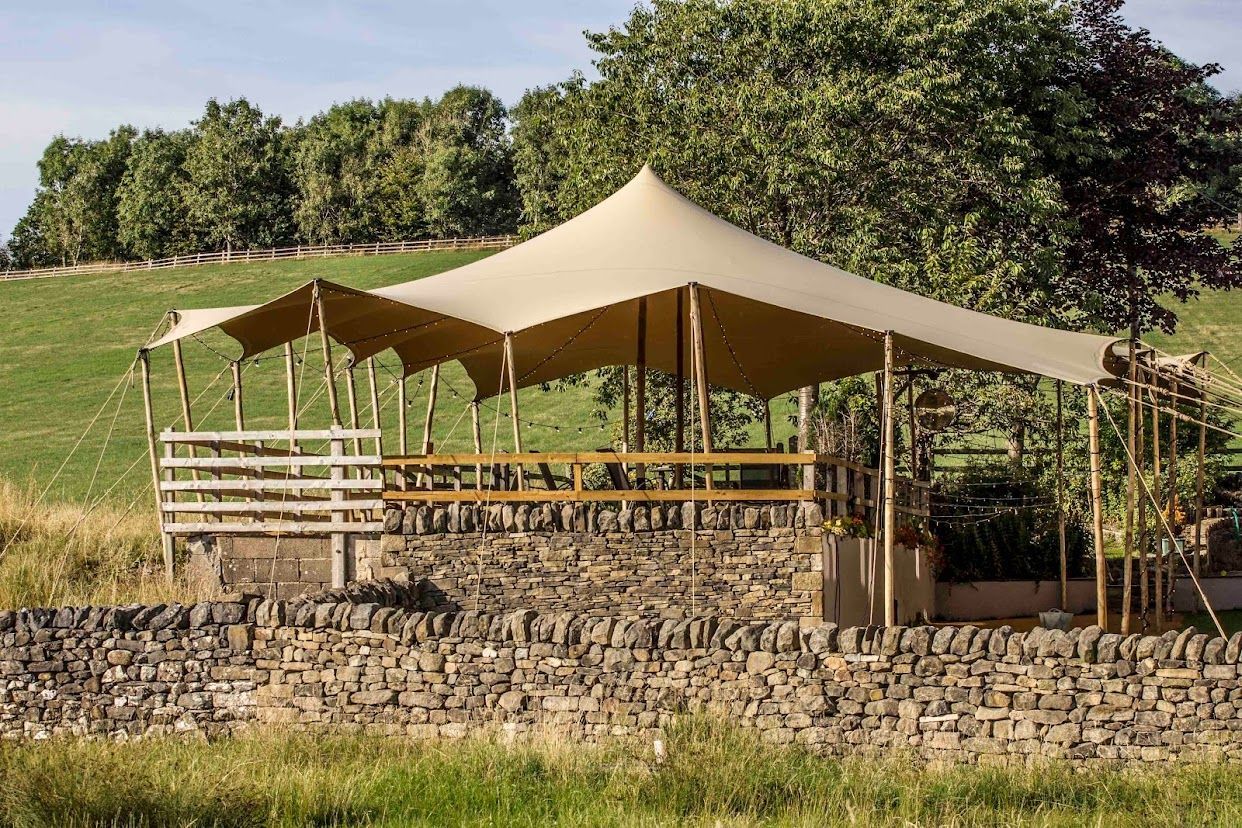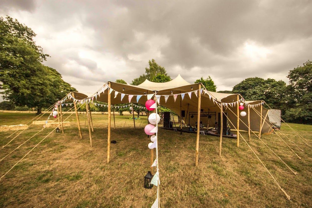 Our tents are a slightly off white sandy chino colour. It's possible to rig multiple tent's together in a variety of combinations.