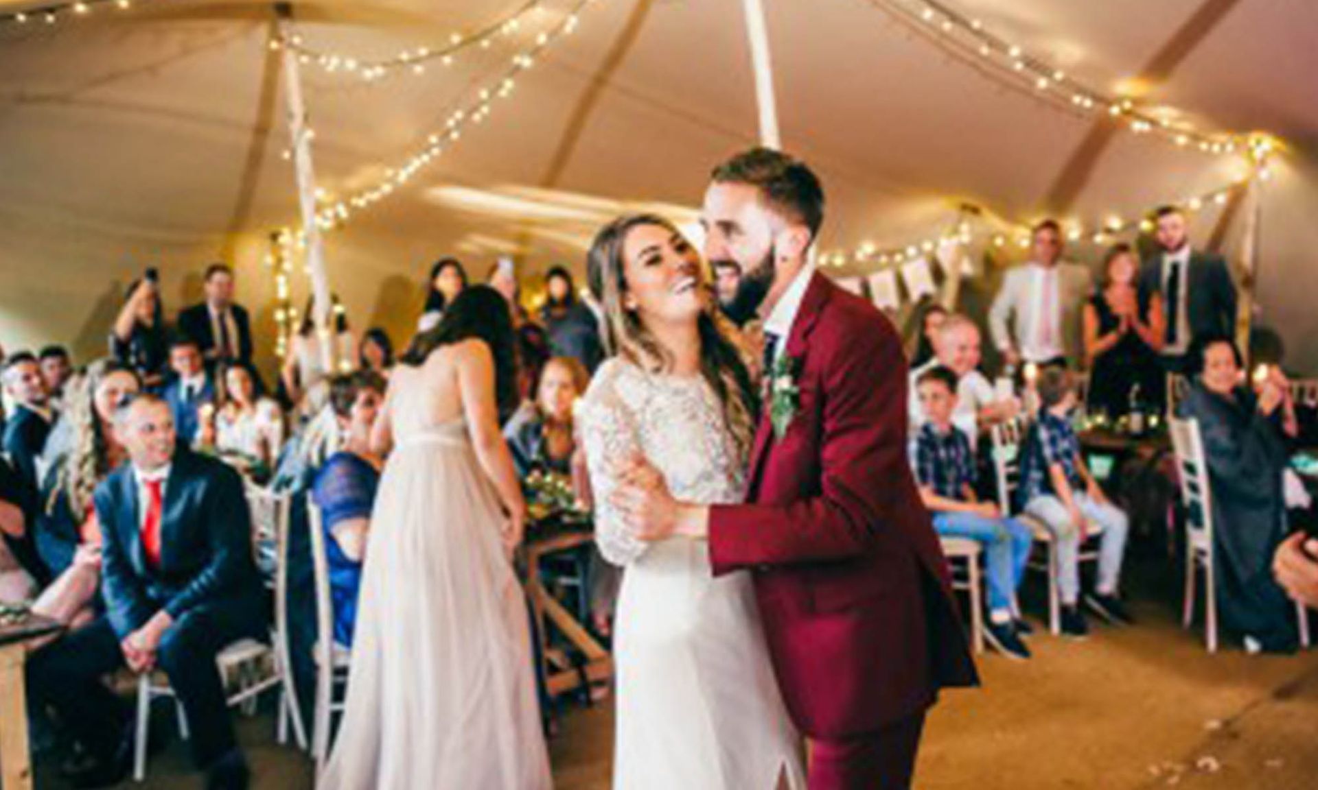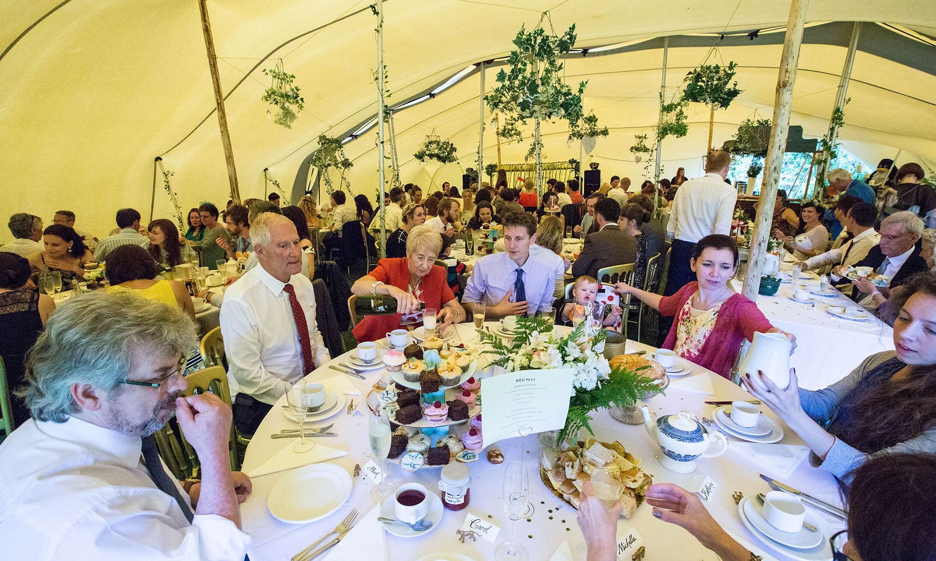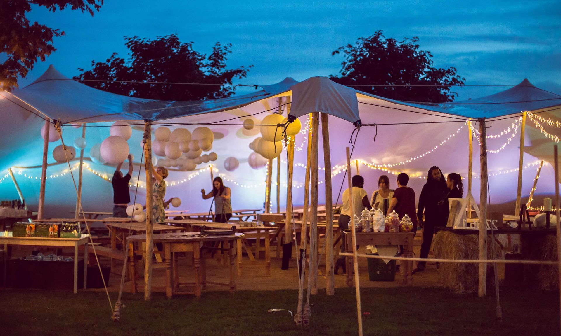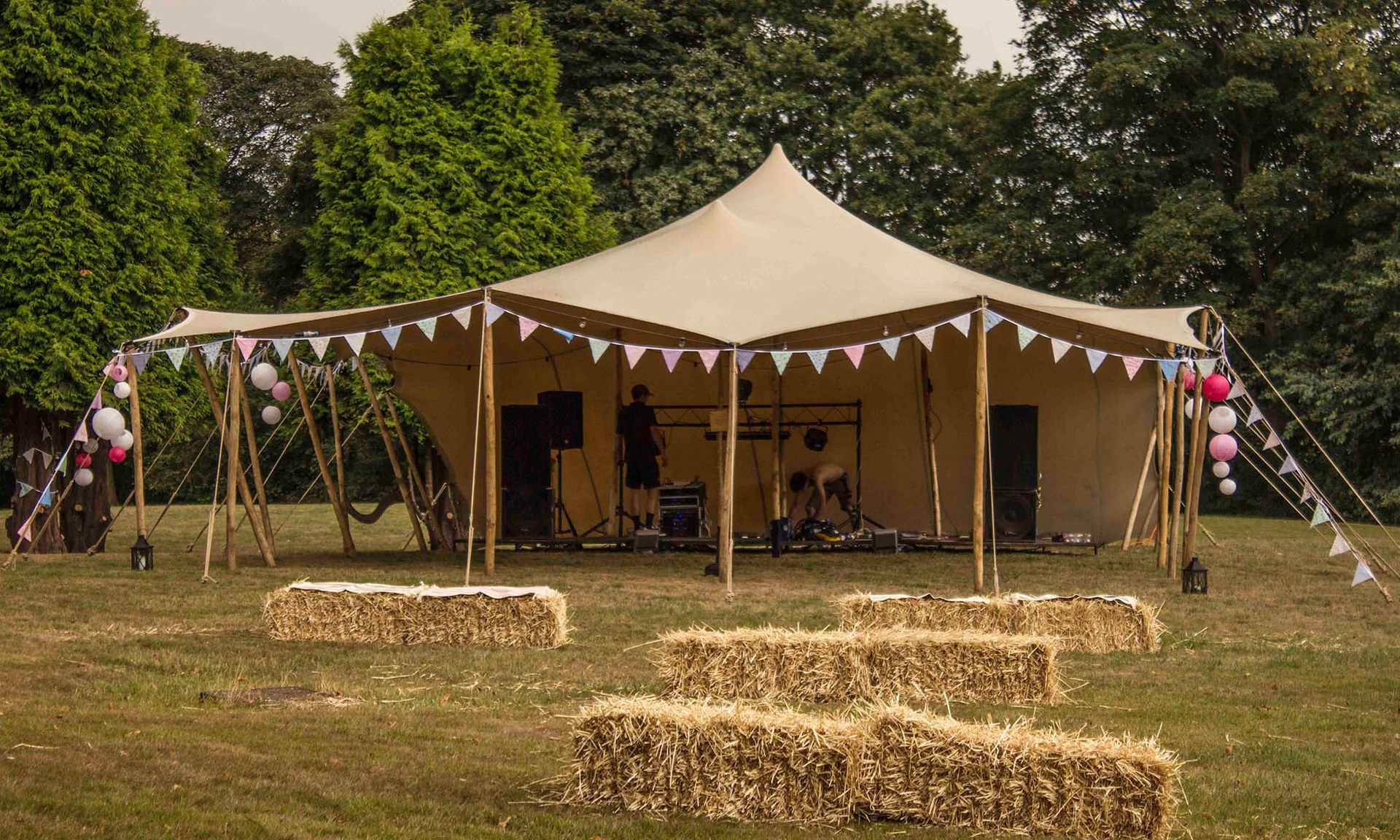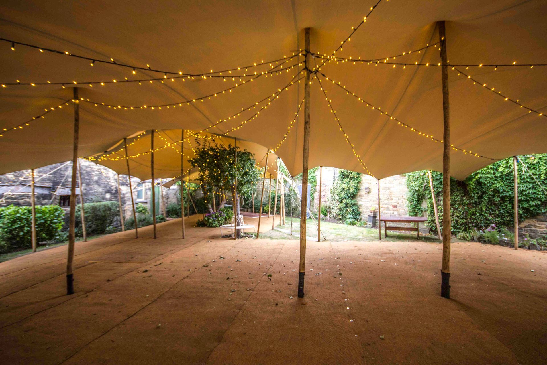 We nail it to the floor with a plastic underlay to prevent water seeping in. £400 per 10mx15m tent.